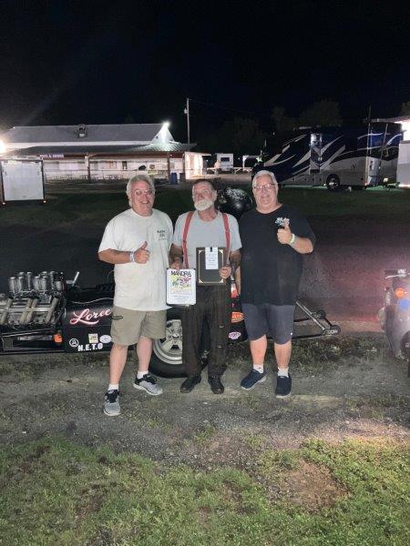 Chirs runs a 10.62 on a 10.60 to beat Jim shearer, Mike Volpe runs a 11.78 on a 11.68 with a .024 RT to end Bruces day, Bob Maulick runs a 9.12 on a 9.07 with a RT .028 to win against Bob English.